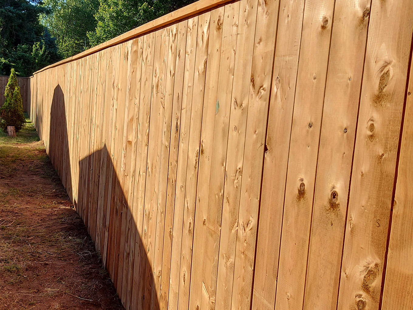 This style features pickets that overlap, with no gaps in between. You can even complete the design of your wood privacy fence by giving it a "cap and trim" style. This accents the edges and gives it a more finished appearance while protecting the edges of your new fence.